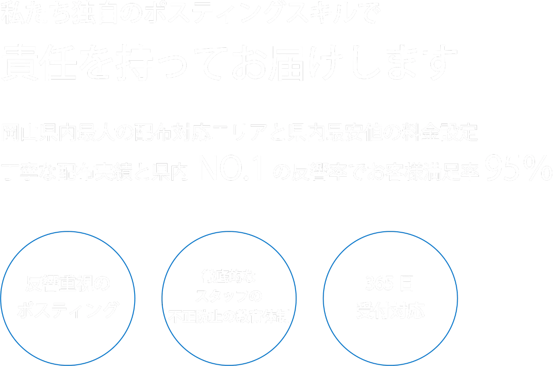 私たちは1件1件丁寧に配布することで、地域での認知度向上と確実な集客を実現します。